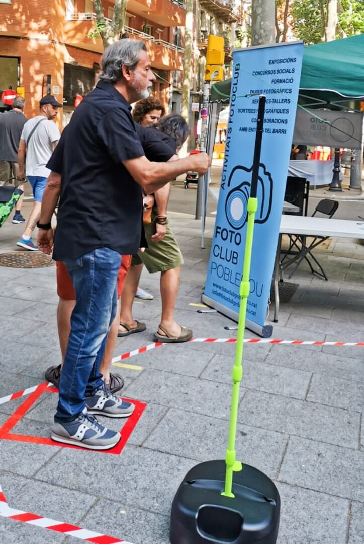 El Fotoclub va decidir aprofitar la idea d’aquest tipus d’atracció, però la va construir de forma més amable: cartells pintats amb càmeres i flors, una pilota subjecta a un cordill i una càmera que feia la foto en el moment de llançar la pilota. Per deixar constància de la participació de la gent, se’ls donava un val amb el qual podien recollir la còpia de la foto en paper a la copisteria TPI COPI del barri.