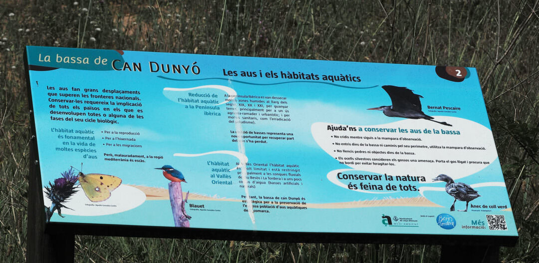 Can Dunyó és una bassa de nova creació que s’ha reconvertit en una zona humida de molta diversitat, on habiten ocells aquàtics i migratoris. A més de poder-hi anar amb cotxe, s’hi pot arribar amb tren (línia R3) i amb autobús (línies E7, E21), des de Barcelona. L’accés es troba al costat del camí fluvial del riu Tenes.