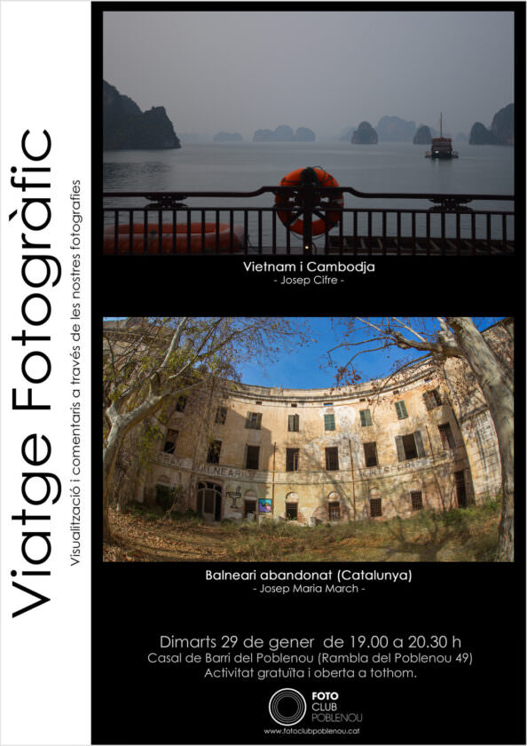 El 2019 el Fotoclub Poblenou ha començat una nova activitat en la qual els socis presenten les seves impressions d’un viatge real o imaginari. Aquest va ser el primer esdeveniment, i agraïm molt als dos primers autors per atrevir-s’hi.
